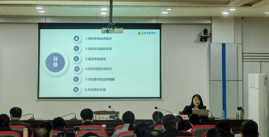 为推进省委巡视整改工作走深走实,切实以整改成效促进政府采购工作规范提升,10月28日上午,我校在行政楼C301会议室召开政府采购政策专题培训会,特邀山东省财政厅政府采购监督管理处副处长高原作辅导报告。校党委委员、副校长李凡路主持会议并讲话,各单位、各部门主要负责人及相关工作人员参加会议。