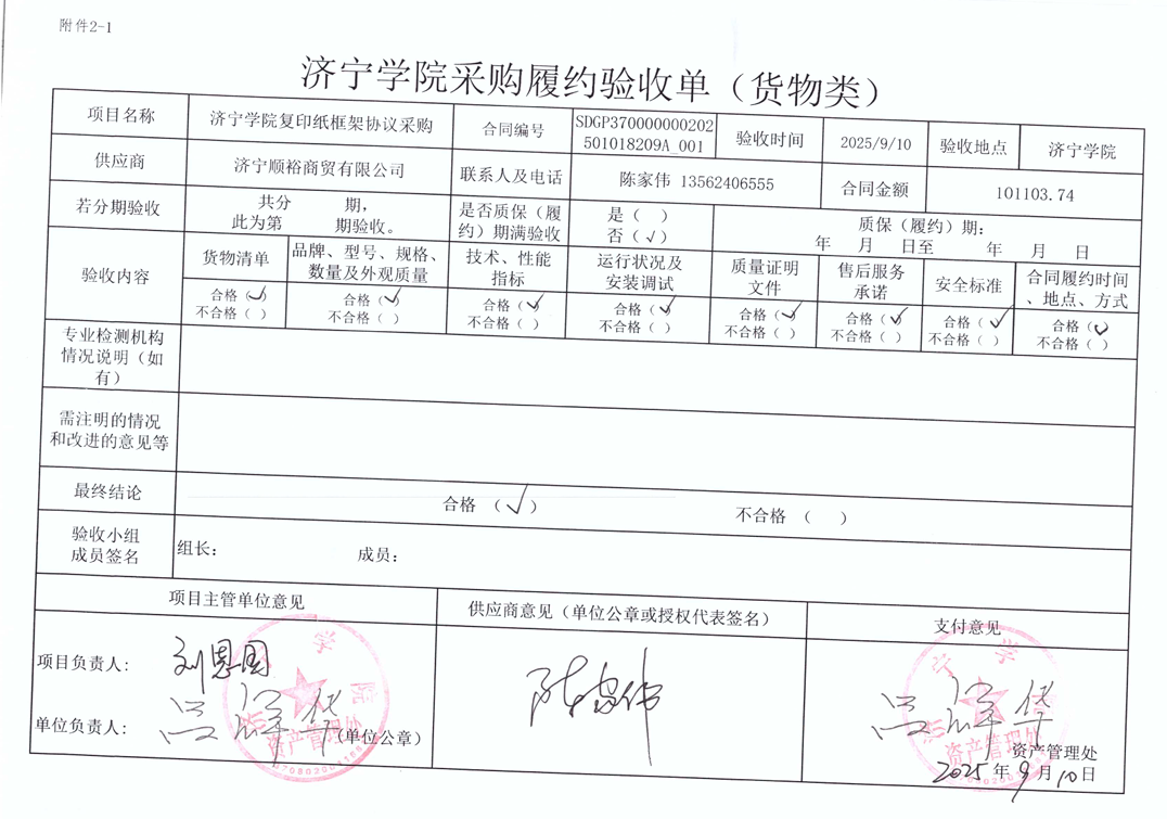 济宁学院复印纸框架协议采购