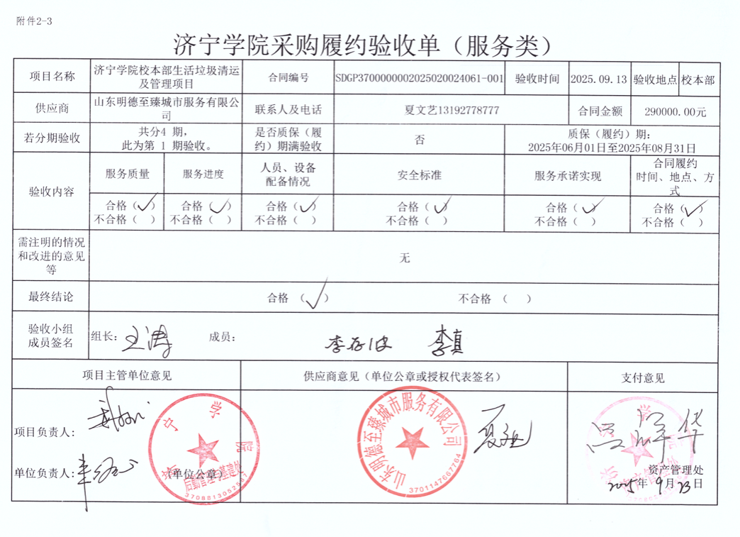济宁学院校本部生活垃圾清运及管理项目