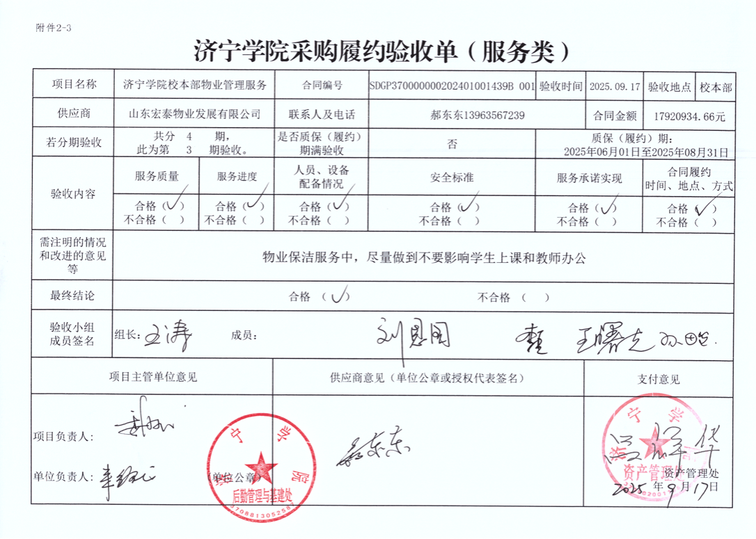 济宁学院校本部物业、绿化服务