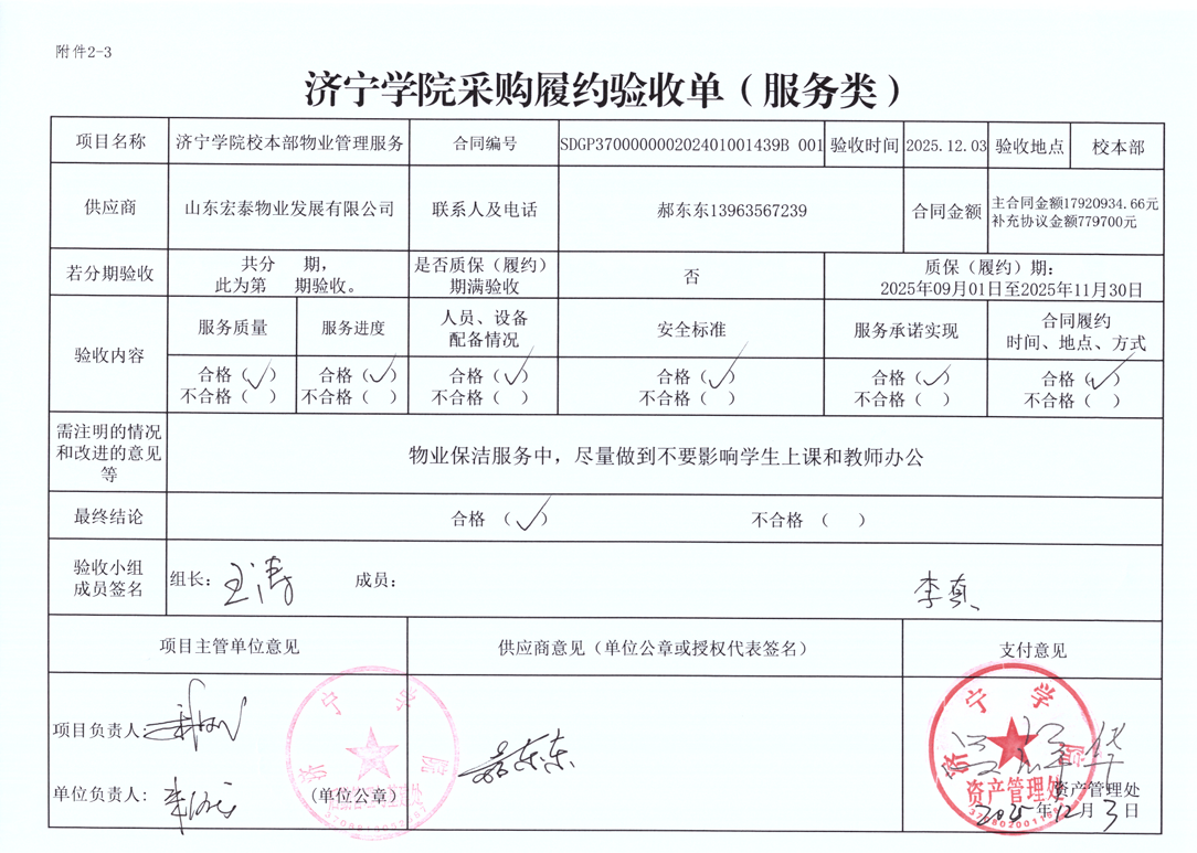 济宁学院本部物业、绿化服务