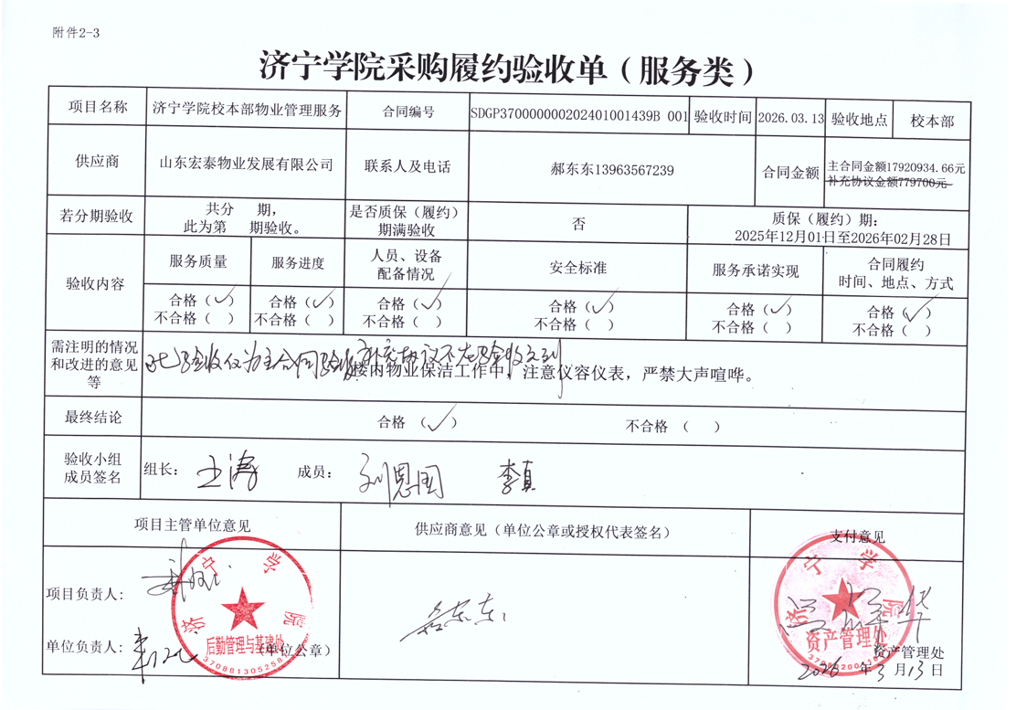 济宁学院校本部物业、绿化服务